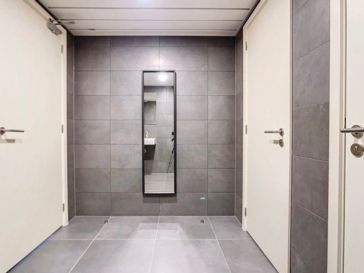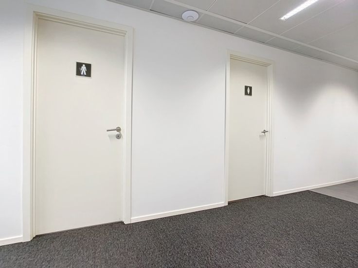 Separate men's and women's toilets (men's toilets 7 m2: 1 toilet + urinal and sink) and (women's toilets 8 m2: 2 toilets + sink);