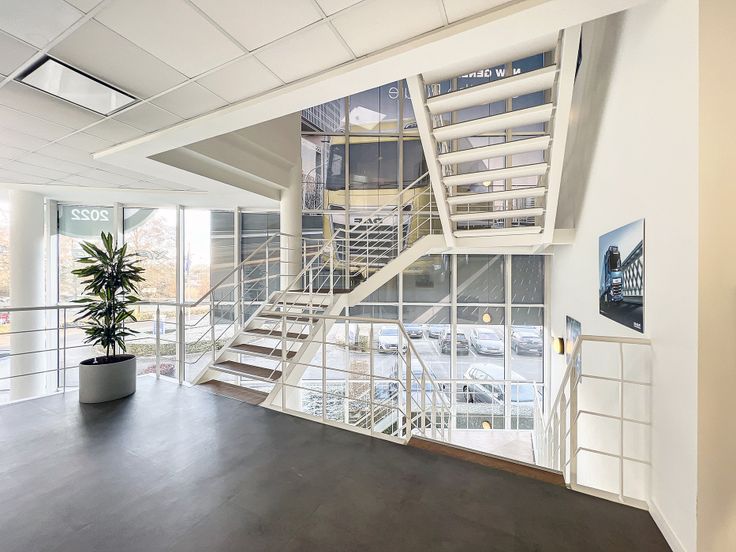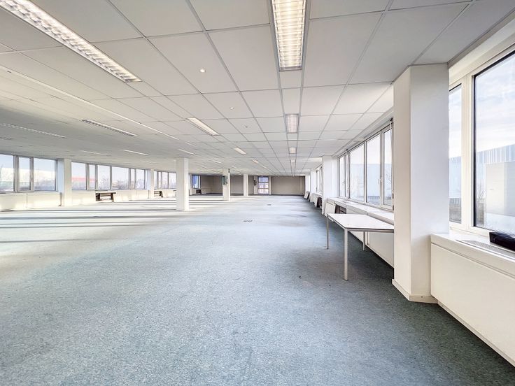 Op de eerste verdieping van het gebouw langs de E17 is een kantoorruimte ter beschikking van 657m².