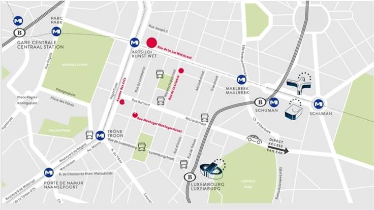 Het gebouw is goed bereikbaar met openbaar vervoer, ingang metro Kunst-Wet op enkele meters.