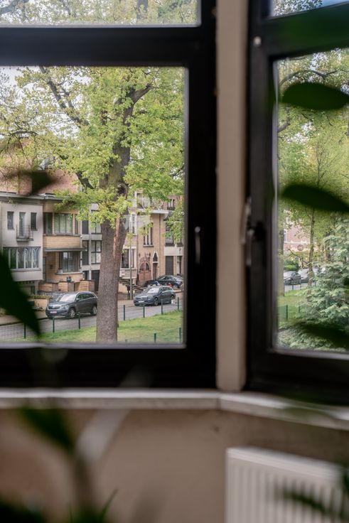 Allereerst een stukje geschiedenis over de Venneborgwijk. Het 16de eeuwse waterslot “Venneborg” lag ten noordwesten van de huidige Venneborglaan, dat is het deel tussen de Alfons Schneider- en de Ruggeveldlaan. Het andere gedeelte van de Venneborglaan (dus tussen de Turnhoutsebaan en de Alfons Schneiderlaan) was de dreef die naar het kasteeldomein leidde. Aan de aangename breedte van de straat en de twee rijen bomen op het middenvak is ze vandaag nog steeds herkenbaar als oorspronkelijke kasteeldreef. Vanuit de leefruimte op de 1ste verdieping heb je een rustgevend uitzicht op die groene bomenrij. En omdat het appartement op een hoek gelegen is, geniet je van veel natuurlijk licht. De ronde vorm geeft en plus een leuke dynamiek aan het appartement. En ook fijn: geen verlies van ruimte aan gang. Je komt het appartement binnen in de leefruimte die centraal gelegen is. Vanuit de halfopen keuken kan je het gesprek van je gasten op de voet volgen. De badkamer bevindt zich aansluitend bij de keuken en heeft een douche en een lavabo. Je vindt er ook de aansluitingen voor de was- en de droogmachine. De slaapkamer bevindt zich in de andere uithoek van het appartement, aan de Frans Erlingerstraat. Geen terras nodig, van de zon geniet je bij Bar Ven.