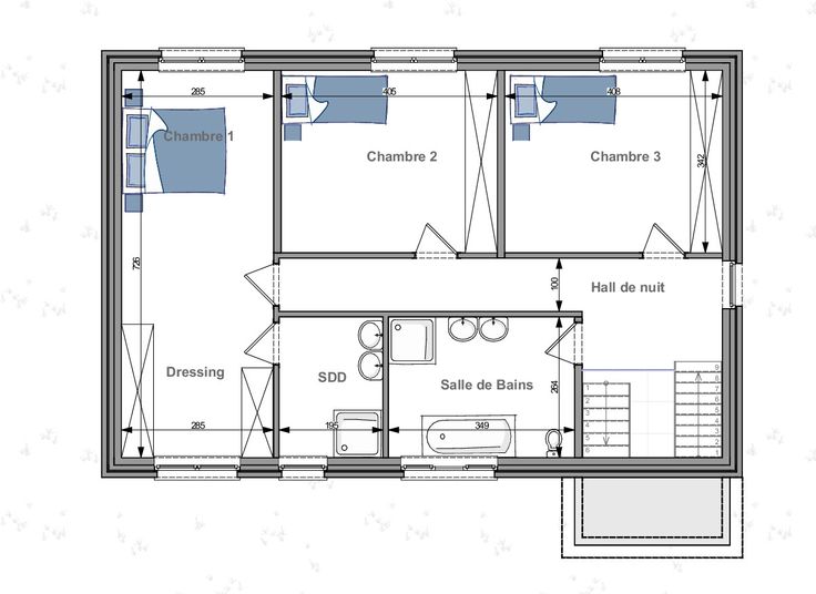 Vous retrouverez 3 chambres, dressing et 1 sdb avec bain et douche.