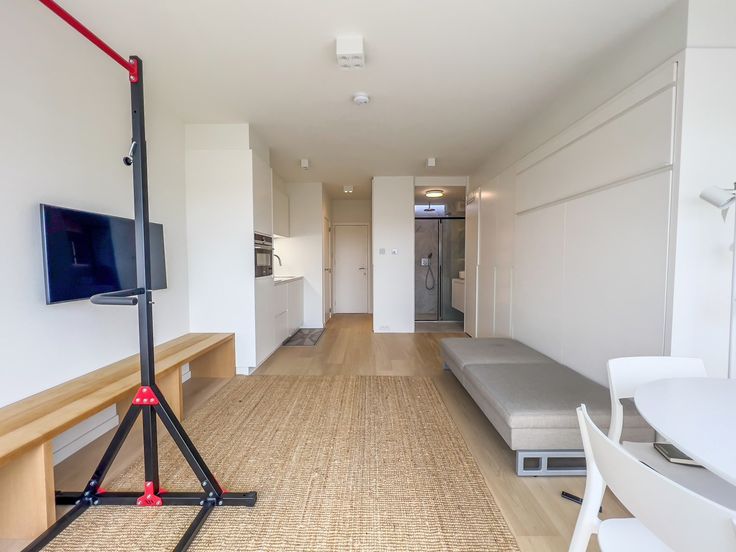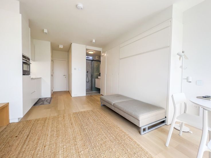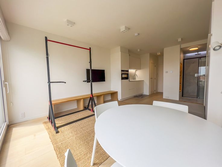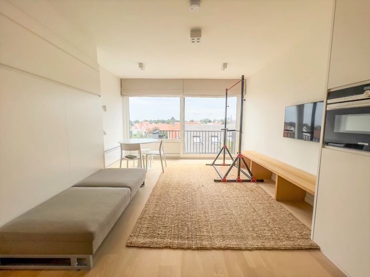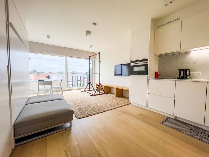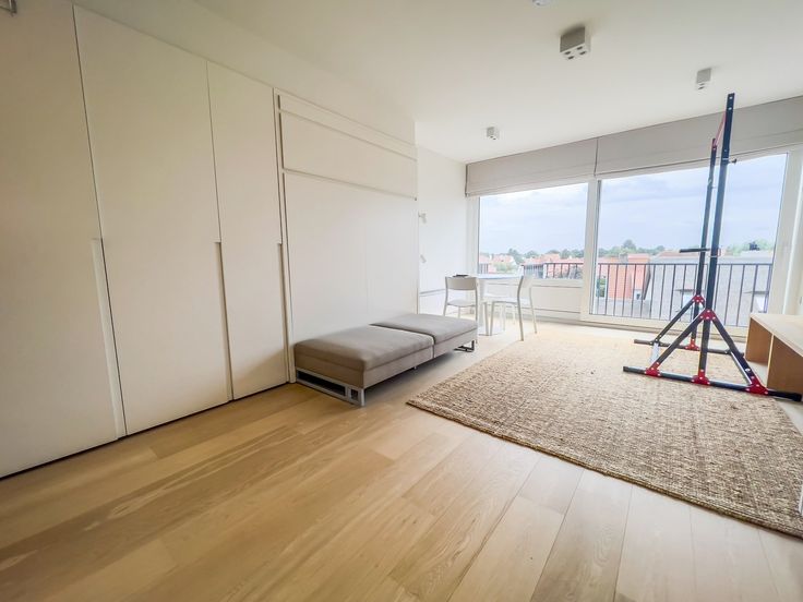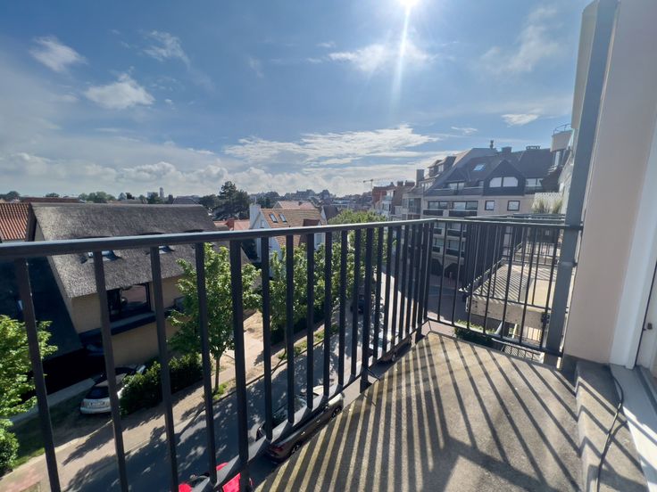 Prachtig gerenoveerde studio met zonnig terras en mooi groen zicht. INDELING : Inkomhal met apart toilet en ingemaakte vestiairekasten. Ingerichte open keuken. Zeer zonnige woonkamer met ingemaakte kasten uitgevend op het terras vooraan. Aparte douchekamer. Fietsenberging.