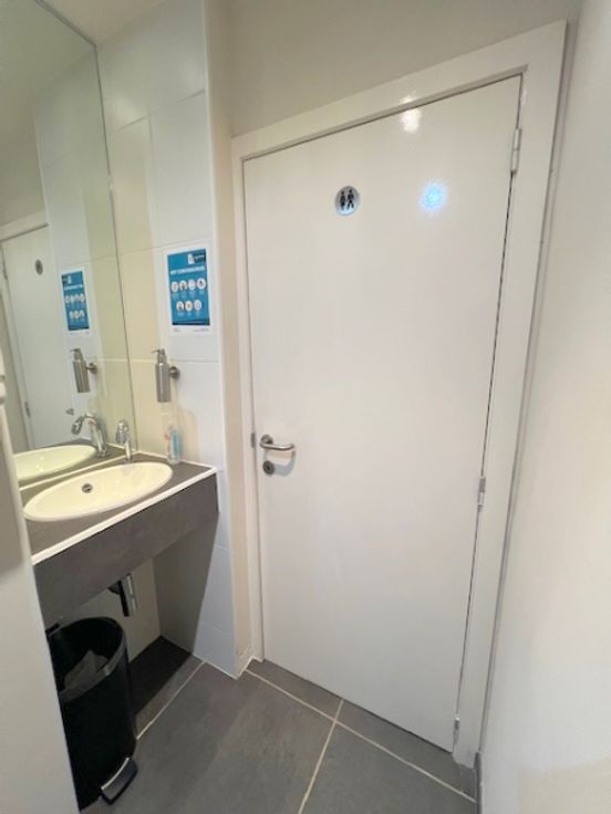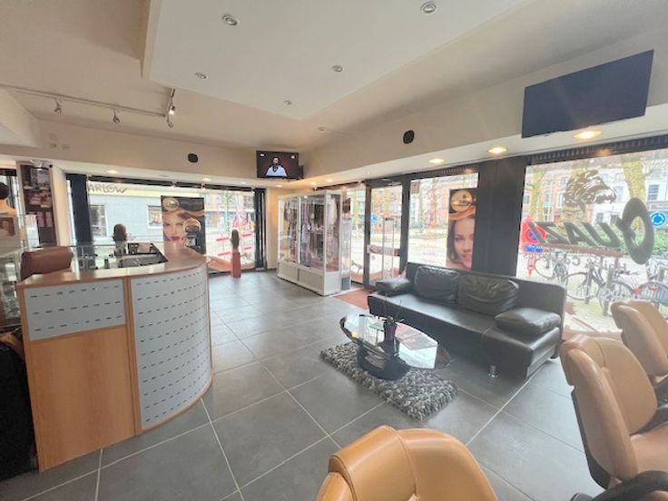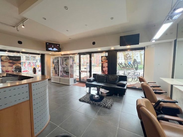 2 ingangen (handig als je vb 2 kantoren wil onderverdelen ) ruimte van 85 M² in mooi grijze moderne tegel , nette moderen keuken met vaatwasser ijskastje en microgolf oven, aparte wc