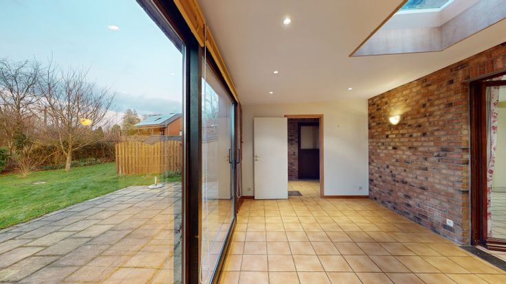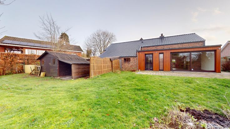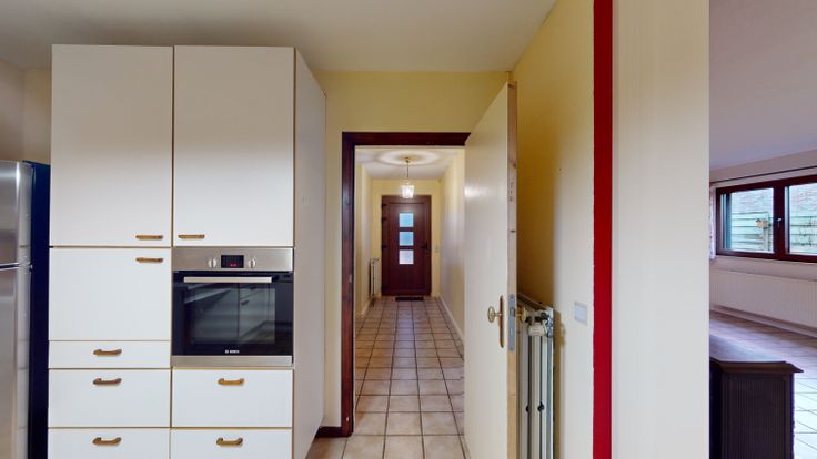BIEN LOUE Composition: Maison unifamiliale 4 façades et plain-pied composée d'un hall d'entrée, séjour/salle à manger, cuisine, hall de nuit, trois chambres, salle de bain, buanderie, terrasse couverte, terrasse extérieure, jardin, garage et grand parking. Particularité: Châssis double vitrage, chauffage central mazout, poêle à bois, système d'alarme. Ecoles, commerces et arrêts de bus accessibles à pied. Renseignements et visite uniquement au 0493/50.25.22 (Mr DELHAYE).