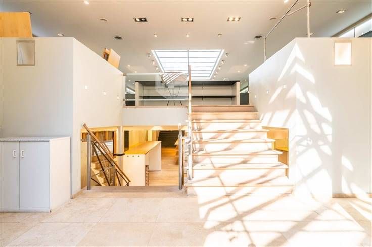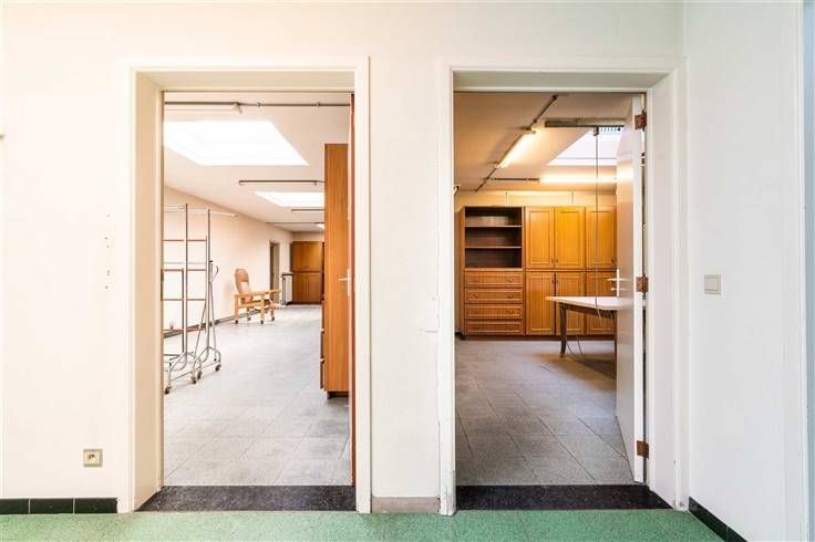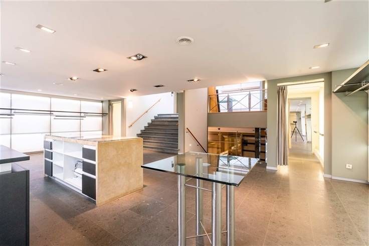 U beschikt over meerdere niveaus binnen het pand. Handig zijn de stockageruimtes, burelen, zijdelingse ingang met ruime garage ( ideaal voor levering ).