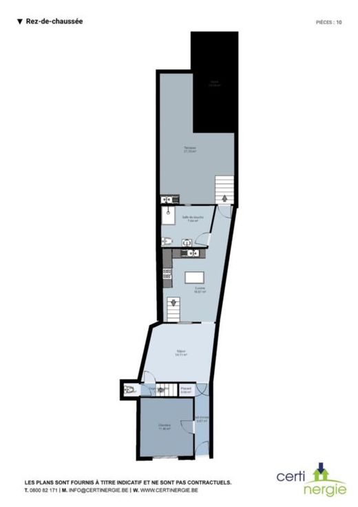 Maison mitoyenne d'une superficie de 150m² habitable, superficie totale 469m². Elle est composée au rez-de-chaussée: d'un hall d'entrée, d'un séjour, d'une cuisine, d'une chambre, d'une salle de douche, d'une toilette séparée, d'une terrasse, d'une remise ainsi que d'un jardin. Au premier étage: d'une chambre ainsi que d'une double chambre. Au deuxième étage: d'un grand grenier avec Velux. Au sous-sol: d'une chaufferie ainsi que d'une cave. Le bien est à rafraîchir et à remettre au goût du jour, mais il a été bien entretenu par les propriétaires. L'électricité est à remettre en conformité. RC INFERIEUR à 745 € (359 €) possibilité de frais d'enregistrement réduits