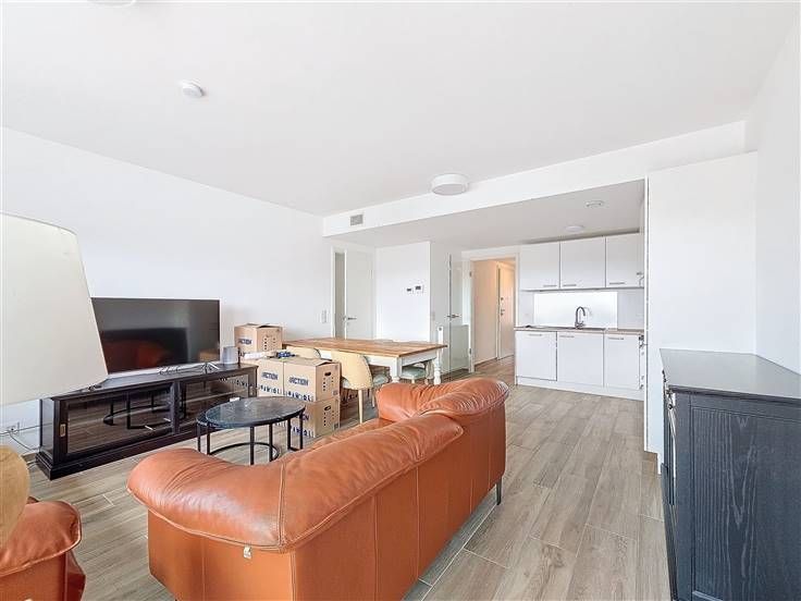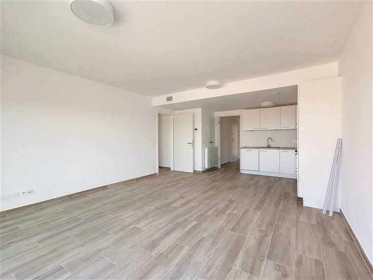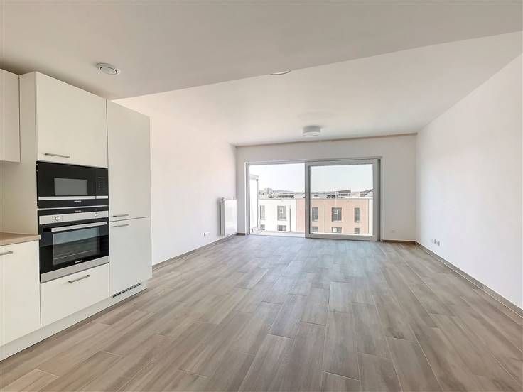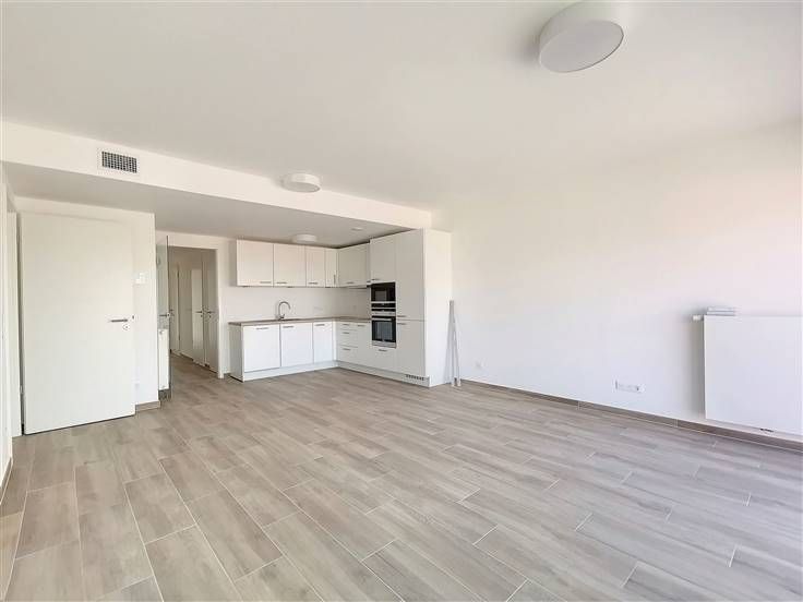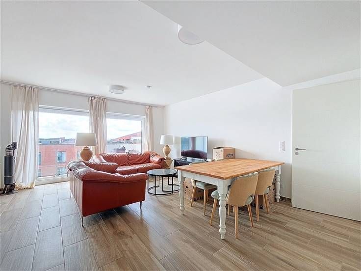 - Lichte woonkamer van ±35m² met toegang tot de tuin en het terras