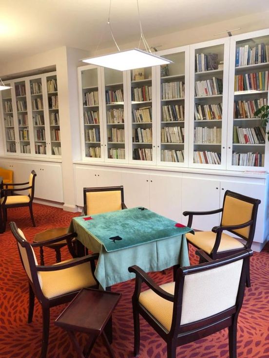 Woonkamer met een prachtige bibliotheek, ofwel 2 slaapkamers of een grote woonkamer / eetkamer / kantoor + 1 slaapkamer met prachtige inbouwkasten in de Service residentie Parc d'Italie, een van de mooiste residenties in Brussel. Profiteer van uw onafhankelijkheid en, als u dat wenst, zijn er diensten beschikbaar: catering, activiteiten, enz. met een 24/24 conciërge.
