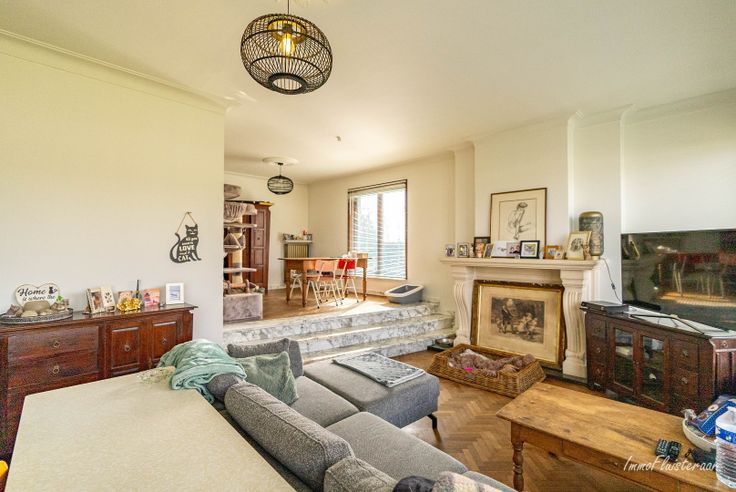 - Een gezellige woonkamer met open haard en eetplaats