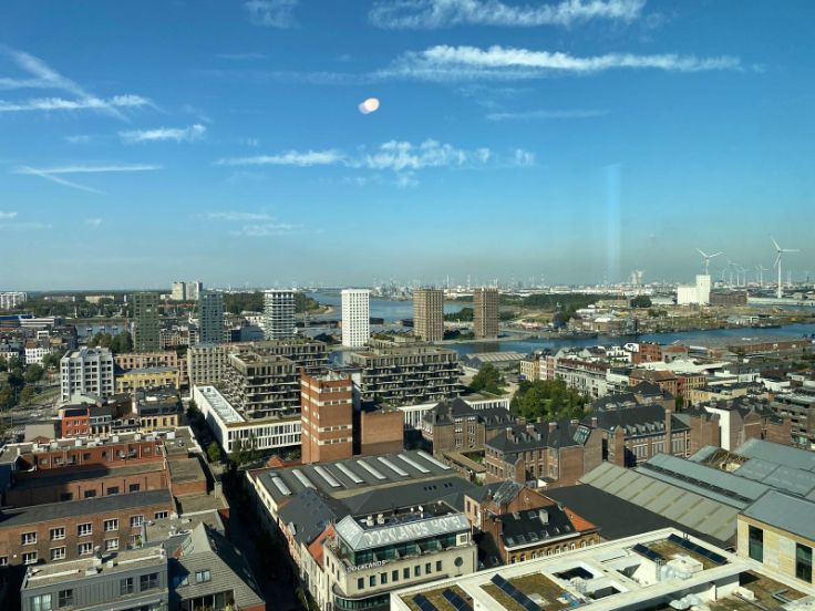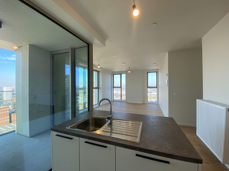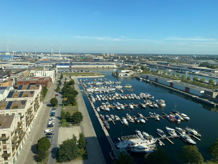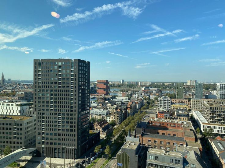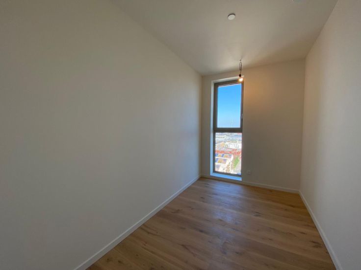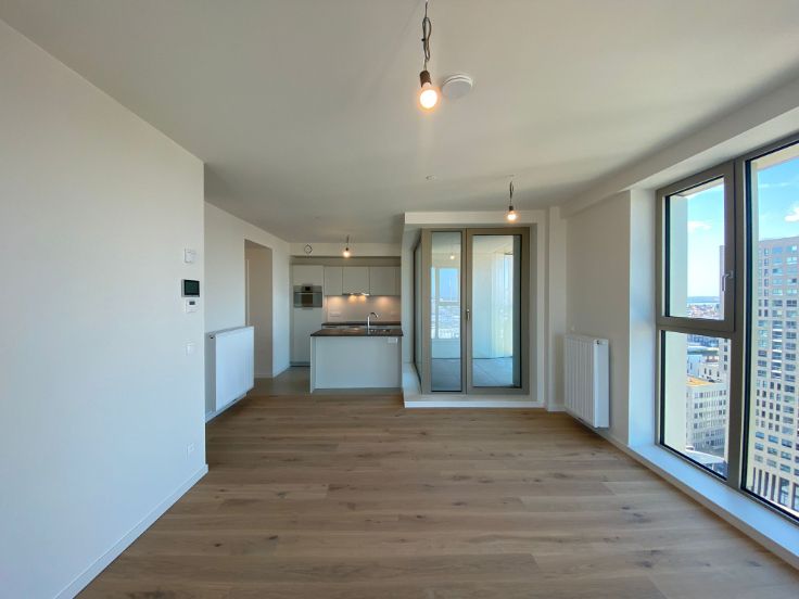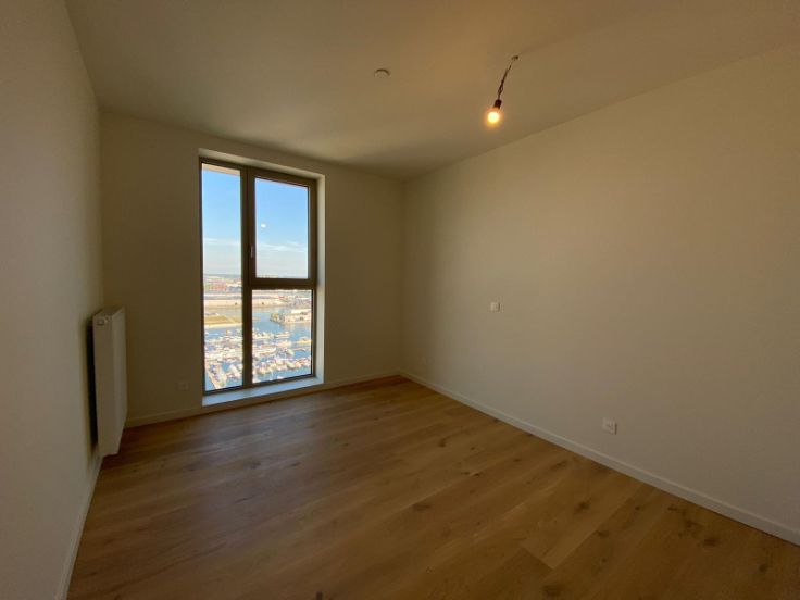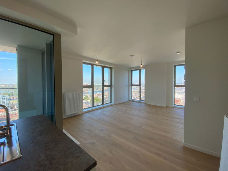 Welkom in de nieuwe residentie "Doktoren", een 81 meter hoge toren, gelegen op een schitterende locatie aan de Jachthaven en het Eilandje. Hoewel u boven in Doktoren zal kunnen genieten van de rust, kan u in enkele minuten de gezelligheid van de buurt opzoeken. Dit hoekappartement, met prachtige lichtinval en uitzichten, bevindt zich op de 18de verdieping. Mooi appartement met 2 slaapkamers. Leefruimte met open volledig ingerichte keuken en aansluitend terras. Badkamer met bad en dubbele wastafel. Berging met aansluiting voorzien voor wasmachine/droogkast. Prachtige parkettegel doorheen het volledige appartement.Het appartement is volledig geschilderd en er komen overal lichtarmaturen en gordijnrails. Helemaal instap klaar dus! In de huurprijs zit een ondergrondse parkeerplaats en berging inbegrepen. Op de 23ste verdieping is er een gemeenschappelijk dakterras. Er is een gemeenschappelijke fietsenstalling aanwezig binnen het gebouw die gemakkelijk toegankelijk is. De energiezuinigheid, fenomenale zichten en de locatie, zijn de absolute troeven van dit gebouw. Onkostenprovisie van €150/maand voor gemeenschappelijke kosten en privatief gasgebruik. Dit appartement is zeer zeker een bezoekje waard; aarzel dus niet ons te contacteren voor een rondleiding!