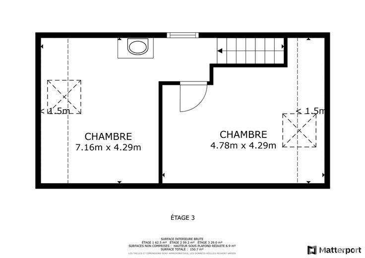 Le 2ème étage abrite deux chambres confortables.