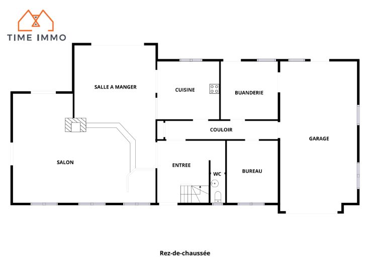 La propriété se divise de la manière suivante : un hall d'entrée impressionnant menant à un grand salon lumineux sur deux niveaux, une cuisine spacieuse, une buanderie, un grand bureau pouvant être converti en chambre, un atelier et un garage.