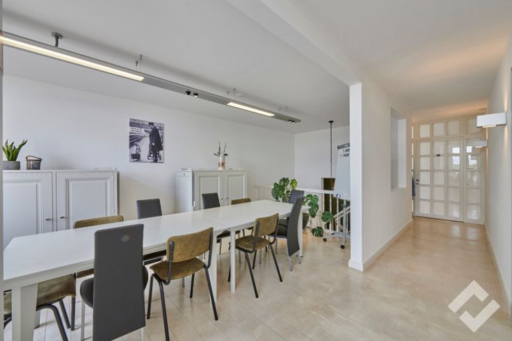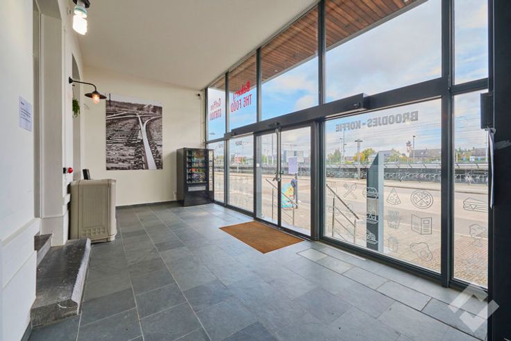 Gelijkvloers: inkom/binnenterras, handelszaak, vergaderruimte, keuken, terras achter, kantoor, toiletten