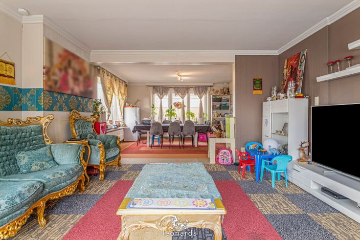 U komt de woning binnen via de inkomhal die u rechtstreeks meeneemt naar de leefruimte. De ruime leefruimte is enerzijds opgedeeld in een zit- en eethoek. Vanuit de eethoek heeft u zicht op de open keuken. De grote ramen zorgen voor veel natuurlijk licht en creëren een aangename sfeer.