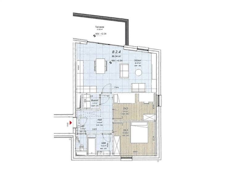 Sorry er is geen nederlandse vertaling beschikbaar. Nous avons le plaisir de vous proposer à la location cet appartement flambant neuf dans la nouvelle Résidence “Le Ravel” Comme son nom l’indique, vous avez un accès immédiat au Ravel. De plus son emplacement est idéal car à proximité de toutes les commodités. La résidence se situe dans une rue à sens unique et elle a une vue dégagée. L’appartement B 2.4 de 86m² attend ses premiers locataires. Il est composé d’un hall d’entrée avec détecteur, un grand living ouvert sur une cuisine équipée, 2 chambres, une salle de bain, une buanderie et un wc. L’ensemble est complété par une belle terrasse de 10m² avec une vue dégagée sur le Ravel, 2 places dans le parking couvert et une petite cave. Résidence de standing avec ascenseur, triple vitrage, cuisine équipée, sécurité,... Un bol d’air au centre ville. Loyer: 940€/mois + 75€/mois de charge pour les communs 1336
