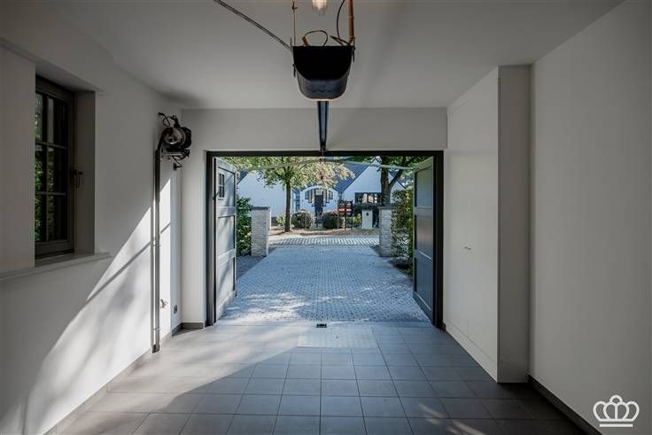 Royale inkomhal met vestiairekasten, mooie trappartij naar de 2e verdieping en gastentoilet. Ruime woonruimte op parket met leeshoek, zithoek met kasten en tuindeuren naar het terras. Open luxe leefkeuken voorzien van inbouwapparatuur: inductiekookplaat, oven, Quooker, dubbele lavabo, vaatwasser, koelkast en eethoek met gashaard. Bijkeuken met kasten, diepvries, aanrecht, uitgietbak en aansluiting voor wasmachine. Inpandige garage voor 1 wagen met automatische poort.
