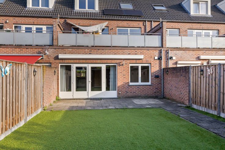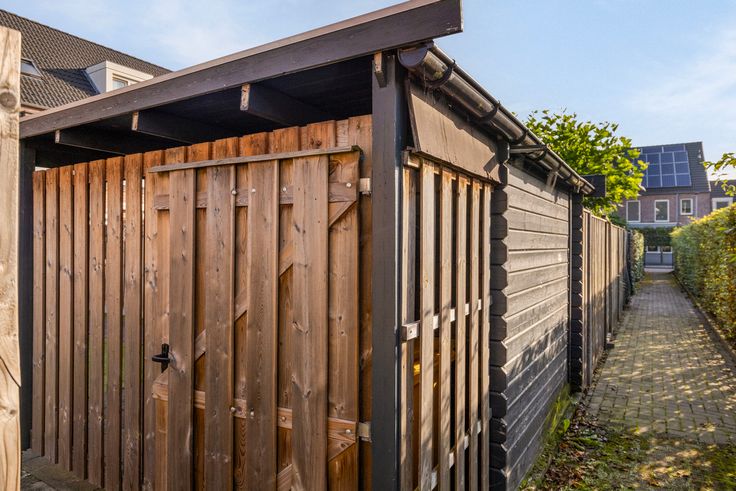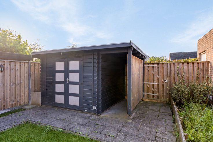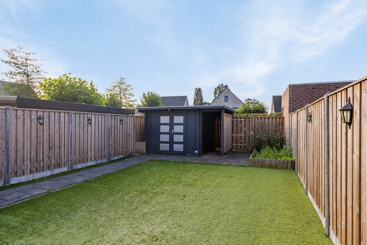 De op het zuiden gesitueerde achtertuin is volledig omsloten en bijzonder onderhoudsvriendelijk. De tuin is voorzien van bestrating, een terras, kunstgras, een groenborder, water, een zonnescherm, een houten berging en een achterom.