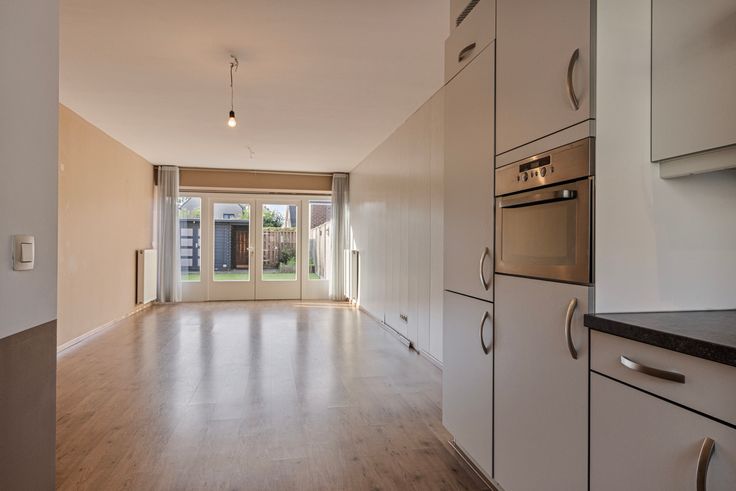 De woonkamer is voorzien van een laminaatvloer, openslaande tuindeuren en een open keuken. Door de grote raamvlakken aan de voor-en achterzijde is er veel daglichttoetreding in de woonkamer. Vanuit de woonkamer heeft u tevens toegang tot een slaapkamer, toiletruimte, berging en badkamer.