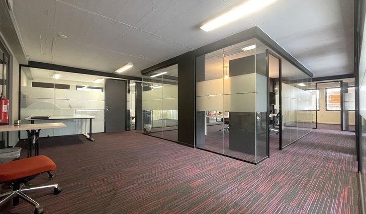 Specificaties: dubbel glas, volledig ingedeelde kantoren, inbouw tl-armaturen, tapijt, gemeenschappelijk sanitair en keuken, cv op gas