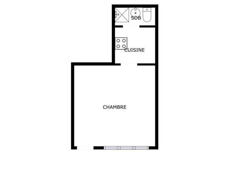 De studio bestaat uit een lichte woonkamer, een open keuken en een doucheruimte met toilet.
