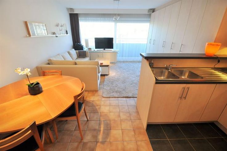 ZONGERICHTE STUDIO MET ZIJDELINGS ZEEZICHT NABIJ DE LIPPENSLAAN. Samenstelling : inkomhall, badkamer, toilet, open ingerichte keuken, lichtrijke woonkamer en een zonneterras.