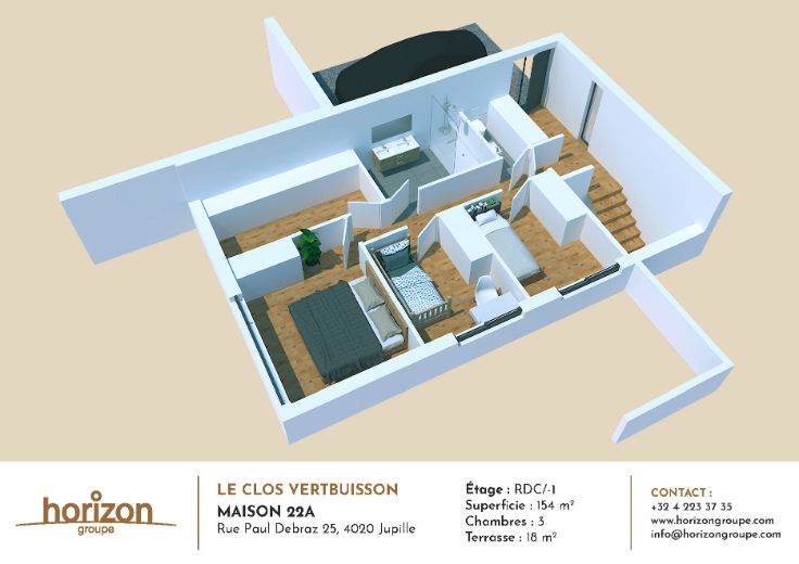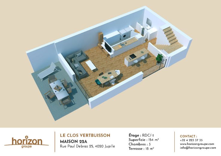 Plongez dans l'élégance d'une maison contemporaine, superbement positionnée au sein du Clos Vertbuisson. Cette réalisation en cours de construction proposera 3 chambres, un spacieux espace de vie de 46m² qui s'ouvre gracieusement sur le jardin. Avec une buanderie pratique, une grande terrasse, cette maison a été conçue pour offrir un style de vie inégalé. Vous bénéficiez d'un carport privé. La superficie généreuse offre un espace de vie raffiné au cœur de la nature. Idéalement située sur les hauteurs de Jupille, cette habitation offre un havre de paix tout en restant à proximité immédiate des écoles, des commerces et de tous les services dont vous pourriez avoir besoin. Ne manquez pas cette opportunité de vivre dans le confort et l'harmonie de cette maison contemporaine au cœur de l'éco-quartier Le Clos Vertbuisson. Contactez-nous dès maintenant pour au 04/223 37 35 ou via info@horizongroupe.com
