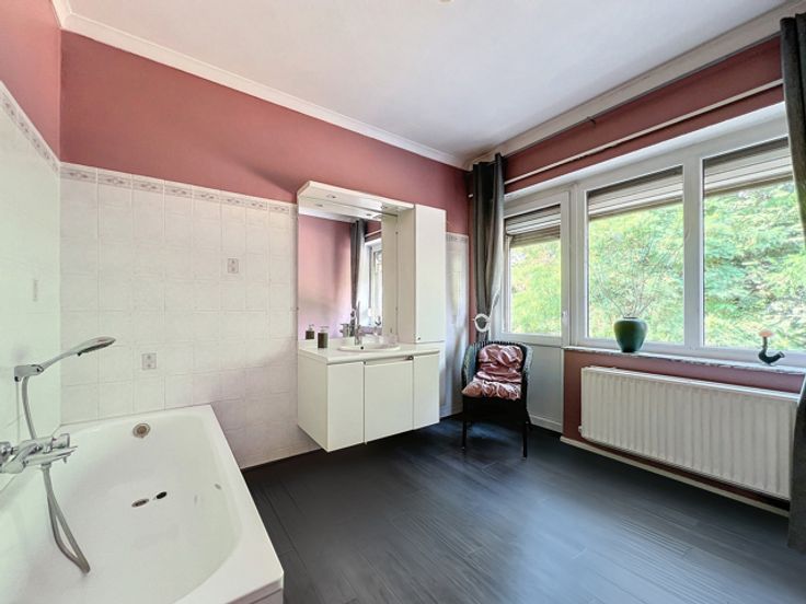 Nigel IMMO vous présente cette magnifique maison 2 façades située dans la charmante commune d'Oupeye. D'une superficie totale de 343 m² sur un terrain de 600 m², cette propriété allie confort, espace et sérénité, offrant un cadre de vie idéal pour les familles, ainsi qu'une opportunité parfaite pour une profession libérale. Au rez-de-chaussée, vous découvrirez un vaste séjour lumineux de 45 m², propice aux moments de détente en famille, une buanderie fonctionnelle, un WC indépendant, ainsi qu'un hall d'entrée spacieux. La cuisine équipée de 18 m² s'ouvre sur une véranda donnant accès à un agréable espace extérieur. Cet étage propose également un espace de 58 m² actuellement aménagé en cabinet vétérinaire, qui peut être facilement adapté à d'autres professions libérales. À l'étage, vous trouverez 4 chambres généreuses (30, 22, 19 et 17 m²), une grande salle de bain de 16 m², ainsi qu'un hall de nuit. Le grenier, entièrement aménagé, offre deux chambres supplémentaires et une salle de douche, idéal pour accueillir une grande famille ou pour créer des espaces de travail ou de loisirs. Les atouts de cette villa sont nombreux : une cave de 34 m², une terrasse ensoleillée (exposition sud-est) de 26 m², un jardin privatif de 320 m², possibilité de se parquer dans la rue, système d'alarme, cheminée bois. Revenu cadastral de 948 €, PEB classé D (280). Cette maison est une véritable opportunité, à saisir pour une personne souhaitant allié le privé et le professionnel dans 1 endroit ! O