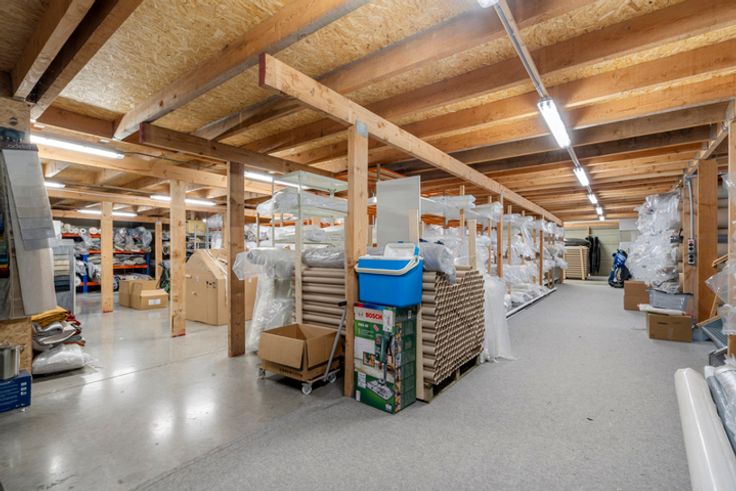 Eerste verdiep onder het dak: open ruimte (verdiep mogelijk mits eenvoudige constructie) momenteel stockage 220 m².