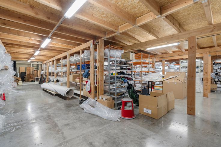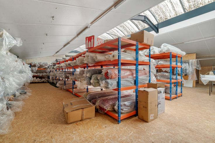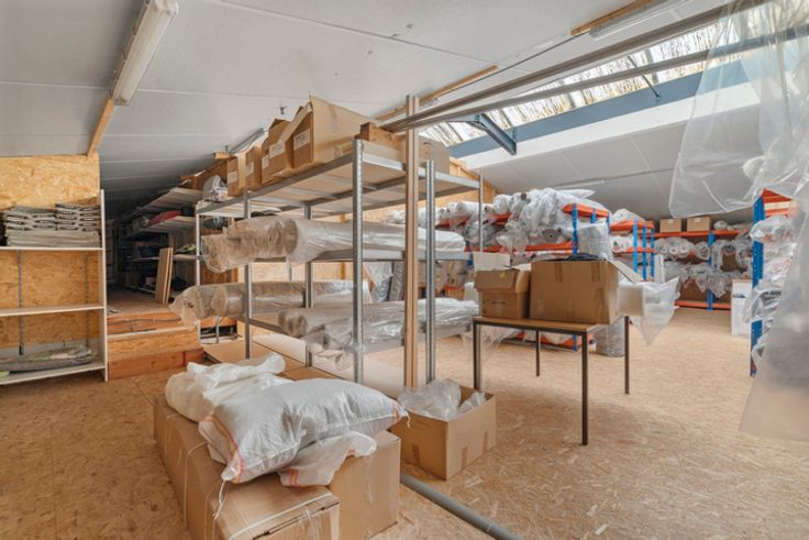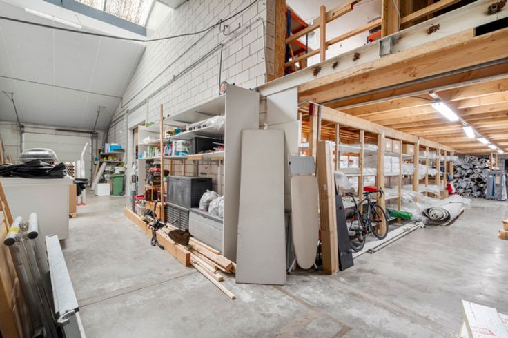 Gelijkvloers: 100m² appartement (instapklaar), 537 m² magazijn en extra burelen.