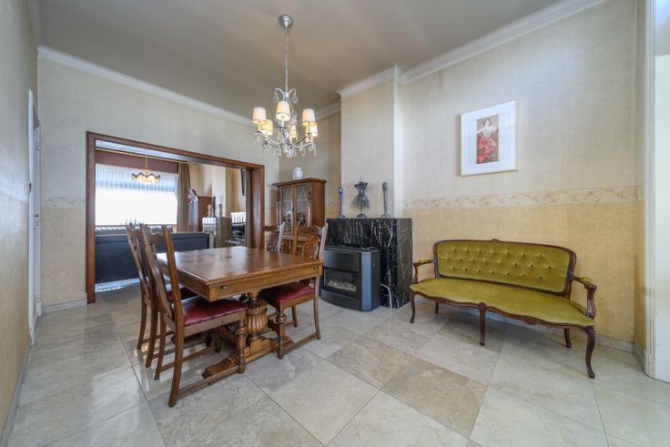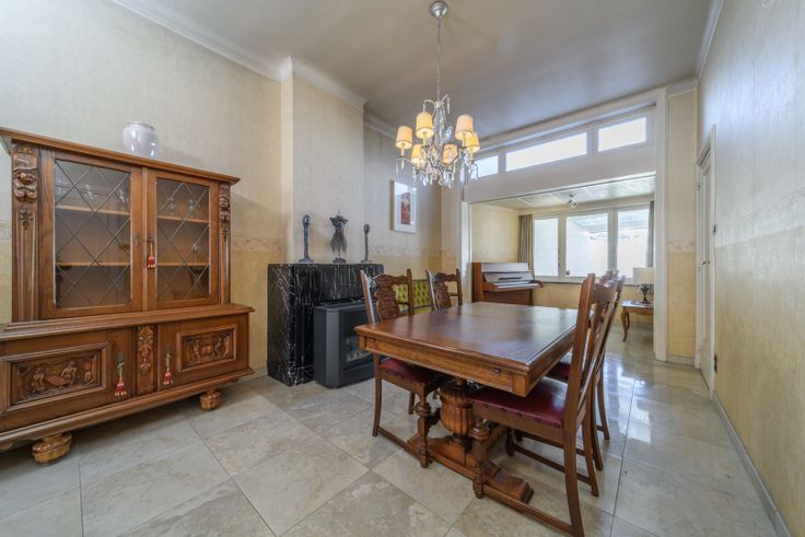 Dit charmante pand, gelegen op een strategische ligging te Aalst, biedt veel mogelijkheden voor wie op zoek is naar een karaktervolle woning met ruimte en potentieel. Op de gelijkvloers is er een authentieke inkomhal, de woonkamer gecombineerd met een eetplaats en biedt uitzicht op de tuin. De naastgelegen keuken, voorzien van een ontbijtruimte. Verder is er een apart toilet. De keuken biedt toegang tot het terras en de tuin. Achter in de tuin bevindt zich een tuinberging, die tevens dienstdoet als wasplaats. De eerste verdieping van het huis bestaat uit twee ruime slaapkamers en een badkamer die voorzien is van een ligbad, dubbele lavabo en een toilet. Op de tweede verdieping bevinden zich nog twee slaapkamers, evenals een kleinere slaapkamer. Één ervan leidt naar een zolderruimte. Bovendien beschikt het huis over een bruikbare kelder, perfect voor opslag. Met zijn authentieke details en de vele mogelijkheden tot modernisatie, vormt dit pand een ideale kans voor wie een droomwoning wil creëren in een karaktervolle setting te Aalst.