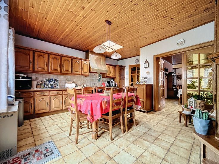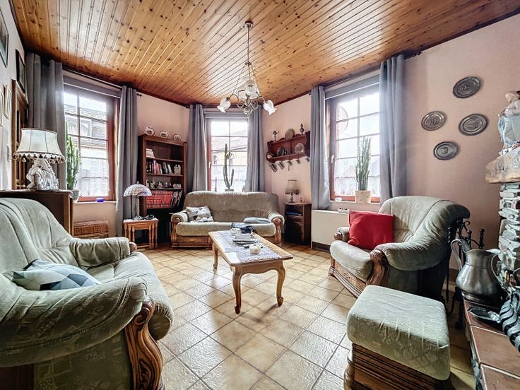 Gelijkvloers: Keuken: 22 m², Inkomhal: 6 m², Woonkamer: 28 m², : 3 m², : 9 m², : 71 m², : 31 m², : 2 m² . Eerste verdieping: Slaapkamer: 17 m², Badkamer(s): 6 m², : 6 m², : 2 m² . Zolder: Slaapkamer: 30 m² . : : 114 Kg Co2m²an, EPC certificaat nb., : 444 Kwh, Total énergie primaire: 62438 kwh/an . Andere uitrusting: Dubbele beglazing, Waterafvoersystemen . Vensters: Hout . Dakwerk: Leien . Diensten: Bus: m, Handel, School: m, Station: m