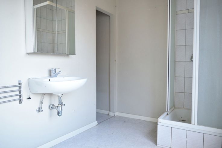 De verdieping (± 60m²) herbergt een overloop, een living (of bureel), een slaapkamer (of bureel), een badkamer, en een toilet.