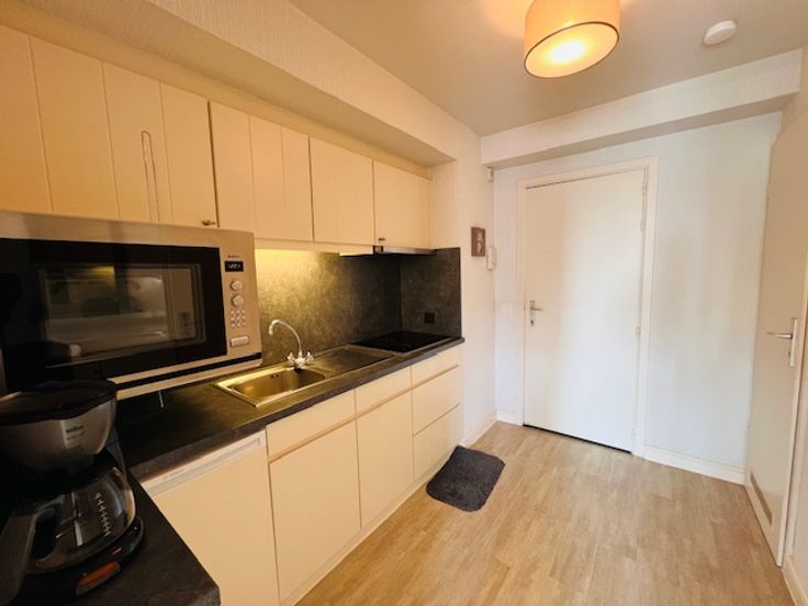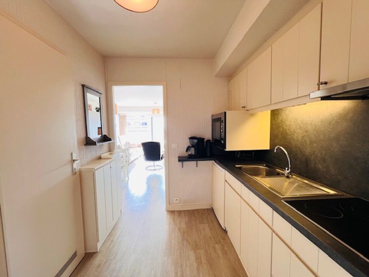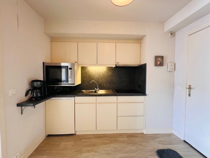 Deze moderne en zonnige studio bevindt zich centraal gelegen in het centrum van Wenduine, op de achterzijde van de Zeedijk in de prestigieuze residentie Carlton (ingang langs Zeedijk en achterzijde Zeedijk).