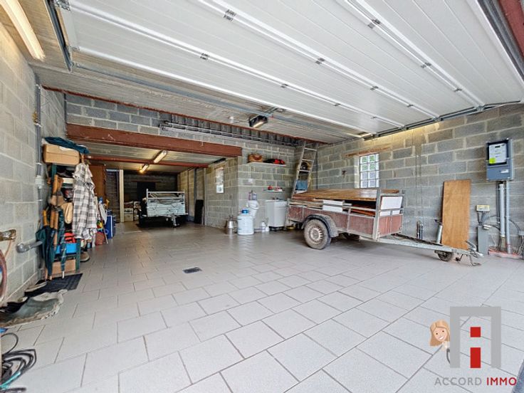 Ontdek deze ruime villa met 3 slaapkamers (met de mogelijkheid om een 4e toe te voegen), ideaal voor zelfstandige professionals of KMO's. Met twee aparte ingangen kun je genieten van aparte privé- en professionele ruimtes. Op straatniveau vind je een hal, aparte toiletten, een wachtkamer, een dokterspraktijk, een garage met ruimte voor 3 tot 4 auto's en een mezzanine voor opslag, evenals toegang tot de kelders en het woongedeelte. Het woongedeelte op het zuiden bestaat uit: een entreehal met garderobe en apart toilet, een bijkeuken, een volledig uitgeruste keuken die uitkomt op de eetkamer met uitzicht over het terras en de tuin, een zitkamer en een slaapkamer (of studeerkamer) met een moderne doucheruimte. Boven leidt de nachthal naar twee grote slaapkamers (17 en 23 m²), waarvan er een kan worden verbouwd tot extra slaapkamer, een badkamer en twee kamers die kunnen worden gebruikt als kleedkamer of studeerkamer. Extra voorzieningen: onberispelijk, geïsoleerd dak, elektrische installatie conform de voorschriften, fotovoltaïsche panelen (7.000 kWp - 2013), elektrische verwarming, nieuwe verwarmingsketel (2022), PVC DV-raamkozijnen, regenwatertank met hydrofooreenheid en riolering. Gelegen op 10 minuten van de steden Luik, Waremme en Tongeren, en dicht bij de luchthaven van Bierset. Gemakkelijke toegang tot de belangrijkste snelwegen (E40, E42, E313, A25, E25). Verkoopvoorwaarden: Vrijblijvend, biedingen vanaf €550.000. Mis deze kans niet!