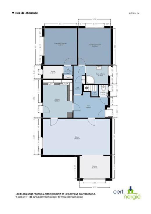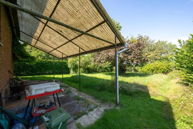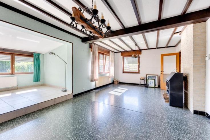 A Nandrin, idéalement situé à proximité de la route du Condroz et de toutes facilités, l’Etude vous propose ce charmant bungalow avec garage et caves sous toute la surface. D’une superficie habitable de +/- 171 mètres carrés, ce bien en retrait de la route est accessible par une grande allée donnant sur le garage en façade et proposant 2 entrées de part et d’autre de l’immeuble. L’entrée principale s’ouvre sur un grand hall d’entrée pourvu de beaux placards encastrés. La deuxième entrée, avec terrasse, donne sur la cuisine équipée (frigo, four, taques et lave-vaisselle). Le living en L avec une partie surélevée (coin salon) est notamment chauffé par un poêle à bois avec un bon rendement. Le hall de nuit, qui est également pourvu des placard ncastrés, donne accès à la salle de douche (avec meubles douche et évier vasque) et à 2 belles chambres ainsi qu’une 3ième pièce pouvant servir de bureau. Au sous-sol, on retrouve donc le garage ainsi que plusieurs caves dont une donnant accès à la terrasse arrière et au grand jardin. Châssis double vitrage bois partout avec volets manuels. Chauffage central (récent) au mazout (cuve 2L) avec boiler intégré