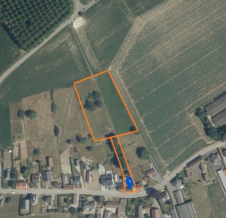 Het perceel van in totaal ca. 79 are ligt in een woongebied met landelijk karakter (eerste 50 m). Het pand met onmiddellijk aanpalende en achterliggende weiden & bouwland (volledig omheind) is ideaal als graasplek voor uw geliefd paard of uw kleinvee dicht bij uw woning. Is ook bereikbaar via zijwegeltjes.
