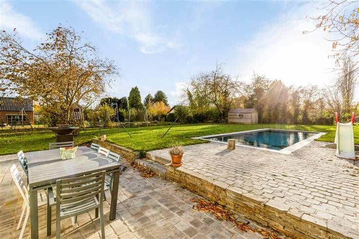 CORBAIS, à deux pas des axes qui vous sont chers (N4/E411/N25), à un jet de Louvain-la-Neuve, de toutes ses facilités, ds une commune où le vert et la campagne se sont parfaitement mariés avec ttes les facilités de commerce (Intermarché accessible à pied), commerces de proximité, pharmarcie, boulangeries, etc... les écoles à Mont-Saint-Guibert, la gare à MSG, etc.... Cette fermette s/belle parcelle de 13a79ca (Sud ouest)a un charme fou, elle est vaste, lumineuse et a gardé son authenticité. Elle bénéficie d'un studio ou espace prof. lib. avec entrée séparée. Le jardin magnifique avec sa nouvelle piscine vous séduira ! Vous tomberez sous le charme deson living de folie avec une cheminée extraordinaire (pièce maîtresse de la maison). Elle propose +/- 225M² + Grenier aménageable de 36M². RDC : hall d'entrée, toilette visiteurs,cuisine super équipée, salon 2 (FO/K7), buanderie, chaufferie, living magnif. avec mezzanine.Studio indépendant : hall entrée, pièce de vie, salle de douches toute mimi, poss.kichinette, entrée séparée p/jardin. Garage. 1er Et. Hall nuit, 3 ch, salle de bains avec toilette (2011). 1 Cave. Travaux finitions à prévoir. Piscine chauffée 2021 haut de gamme, vastes terrasses.Abri jardin.Toiture ardoises artificielles (poste à envisager), chauff.central gaz 2008, châssis alu 2018 (salon arrière 2014), conformité électrique. Terrain constructible à gauche de l'habitation