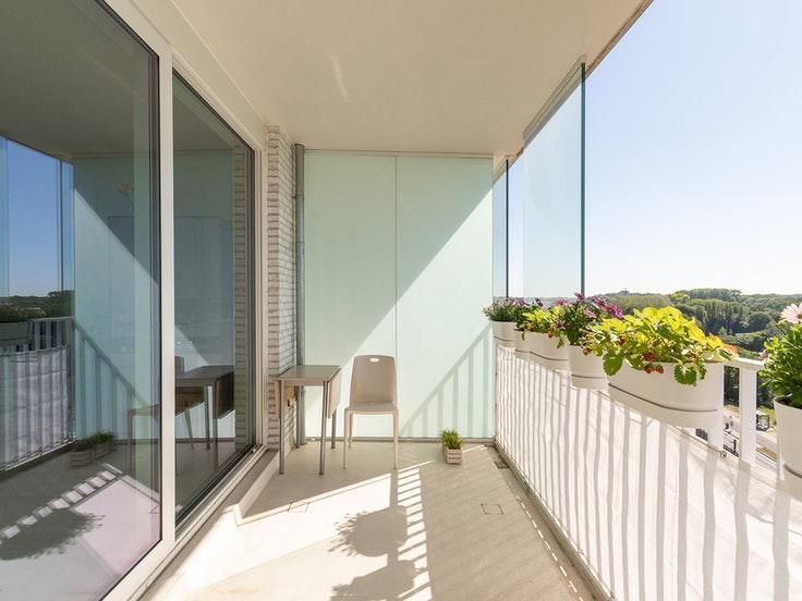 Ca. 78m² gelegen op de achtste en hoogste verdieping - Een recent gebouw van 2017 - Prachtig open uitzicht - Zeer centraal gelegen nabij Antwerpen centrum, openbaar vervoer, scholen, sportfaciliteiten, belangrijke in-en uitvalswegen - Ideaal starters-of investeringsappartement Indeling: Inkomhal - apart toilet - berging - ruime leefruimte met open keuken (oven, koelkast, inductie kookplaat, afzuigkap, spoelbak) - terras oost (10m²) - badkamer met inloopdouche - twee slaapkamers (12m² en 8m²) - terras west - berging in kelder op verdieping -1 Autostaanplaatsen in het gebouw zijn te huur of te koop aan €25.000 Troeven: - EPC A (85kwh/m²) - Recent gebouw (2017) - Uitstekende Mobi-score van 9,8 dankzij goede ligging en aanwezigheid bus-en tramlijn - Gelegen op hoogste verdieping - Vlakbij Provinciaal Groendomein Rivierenhof en Speeltuin Park Spoor Oost - 2 terrassen waarvan één van 10m² - Kelderberging Bezichtigingen zullen worden ingepland, stuur aub een mail bij interesse.