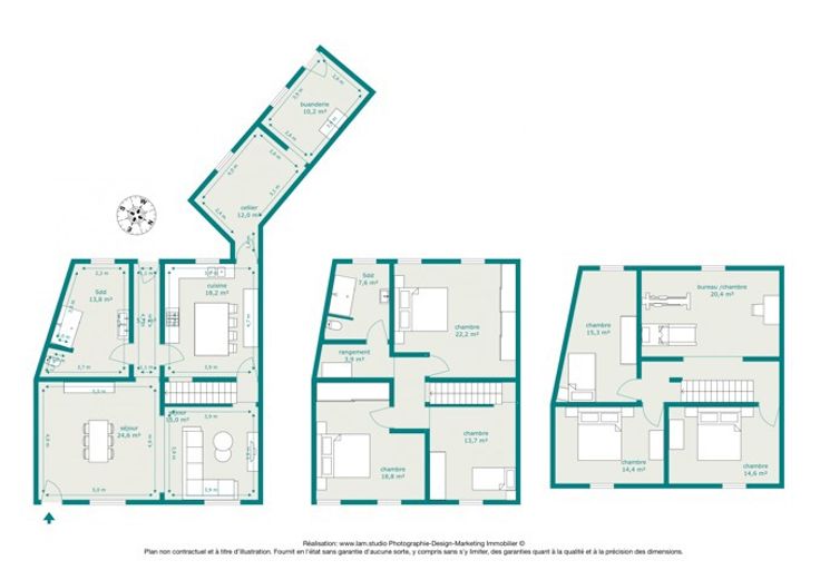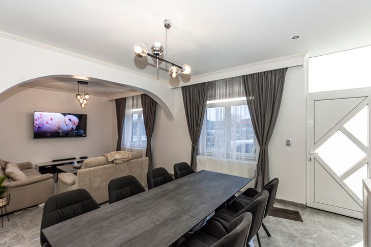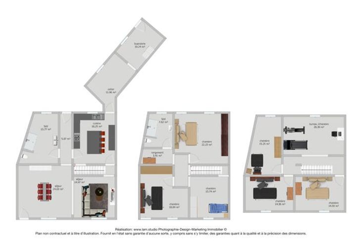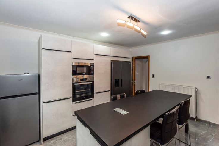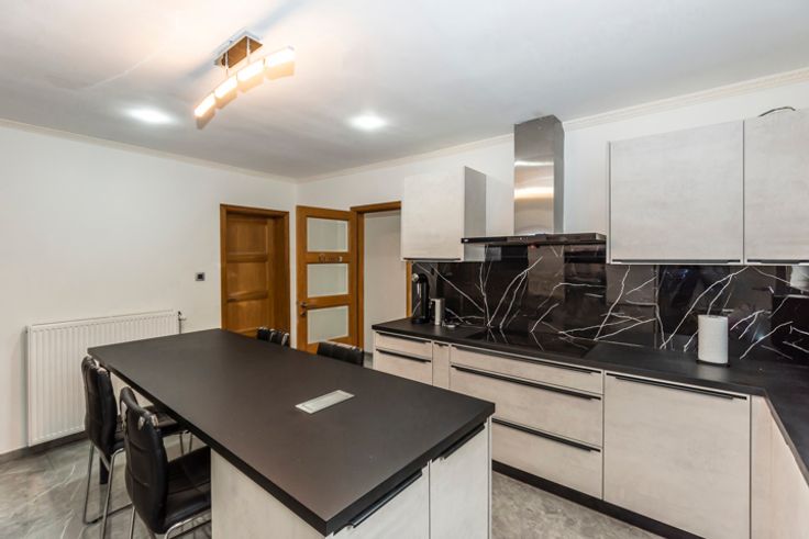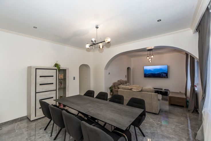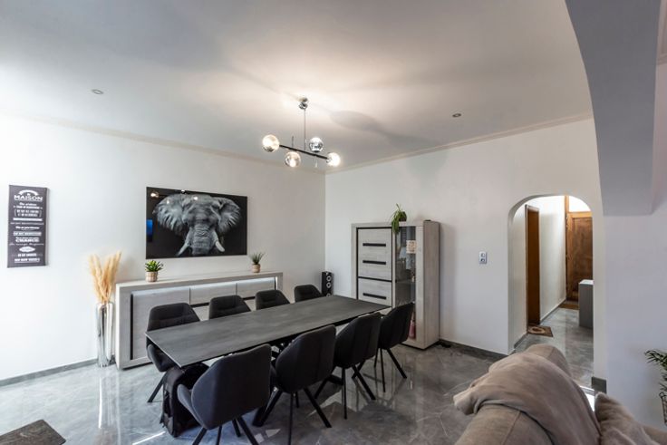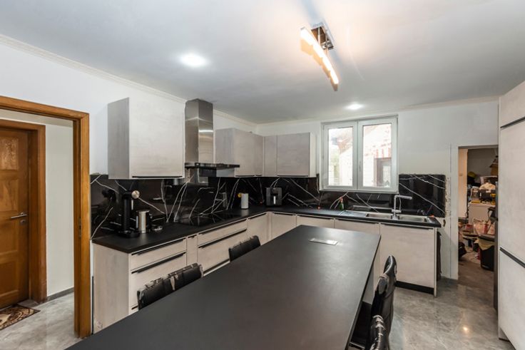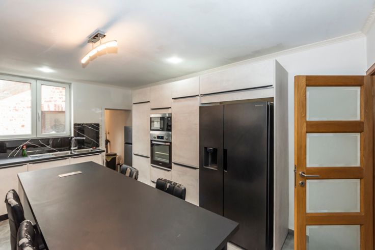 !! SOUS OPTION, PLUS DE VISITE !! Réf : 24544. Très spacieuse et lumineuse maison 3 façades intégralement et récemment rénovée, offrant 285m² habitable, en proximité de toutes les commodités nécessaires au quotidien, pouvant offrir un potentiel de 7 belles chambres, à découvrir absolument sans tarder. Elle peut sur convenance vous être vendue intégralement meublée et aménagée, vous vous permettant de cette manière un emménagement immédiat. Elle se compose actuellement au sous-sol d'une spacieuse cave. Suivi au RDC, d'un beau séjour, cuisine avec ilot central entièrement équipée (Taque induction, Hotte, Four, Micro-onde, L-V, Evier double, Frigo américain), Salle-de-bain équipée (Douche à l'italienne, Double vasque, WC), Pièce à usage polyvalent (Cuisine secondaire, cellier, bureau, etc...), Buanderie. 1ier étage composé d'un hall de nuit, 2 grandes chambres, un espace détente (pouvant être convertit en une 3ième chambre), pièce de stockage et une salle-de-bain équipée (Douche à l'italienne, Vasque, WC), 2ième étage composé d'un hall en mezzanine, 3 chambres et une salle de jeux/bureau (pouvant être convertit en une 7ième chambre). Côté technique : DV PVC partout avec volets, C-C GAZ neuf, Electricité en conformité, Toiture et plate-forme neuve, etc... Côté extérieur : Terrasse/jardin à terminer, ainsi que le crépis de la façade de l'annexe. RC : 731,00€