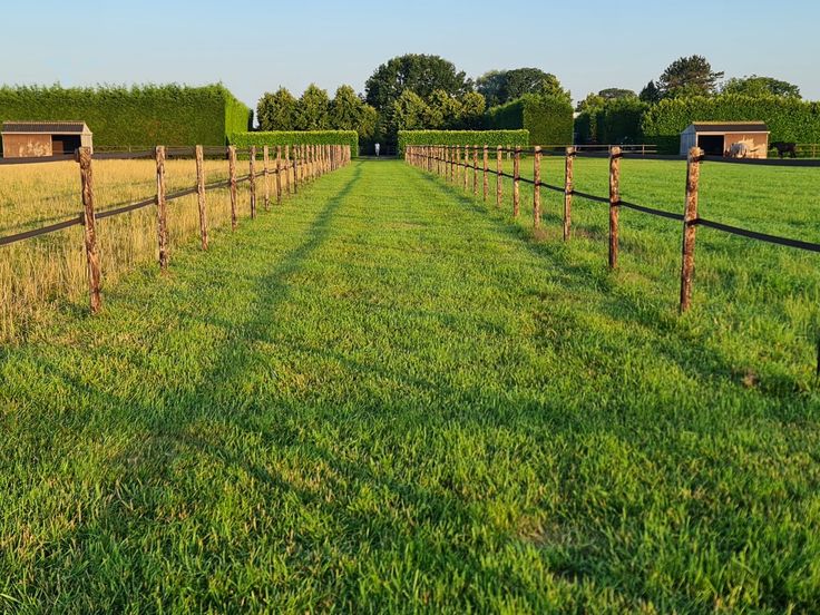 Het weiland is volledig omheind met Heras hekwerk. Binnen de omheining zijn de weilanden opgedeeld met paardvriendelijke afrastering met schrikdraad, voorzien van schuilstallen en automatische drinkbakken.