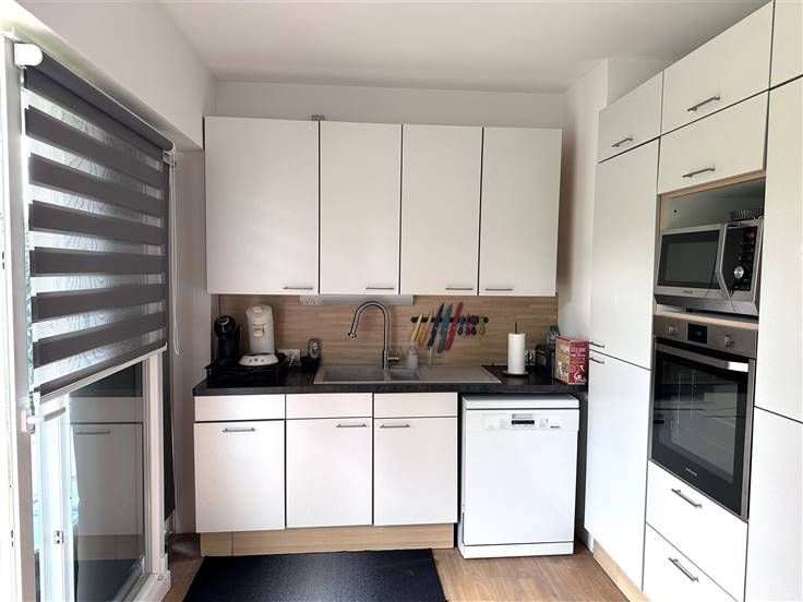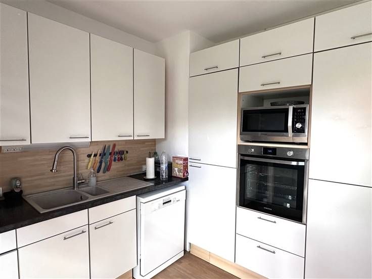Erpent, dans un quartier résidentiel, au calme tout en étant à proximité de toutes les facilités (collège d'Erpent et bus à 2 min à pied, commerces, grands axes, centre-ville de Namur à 7 min en voiture,...), très lumineux appartement avec terrasse plein sud situé au rez de chaussée (accessible PMR) d'une belle petite résidence. Composition : Hall d'entrée avec placards, très lumineux living de ± 32 m² avec baie vitrée donnant sur grande terrasse de ± 12 m² orientée plein sud, cuisine américaine super-équipée (taques vitro., hotte, frigo, congélateur; lave-vaisselle, micro-ondes,...) avec baie vitrée sur la terrasse, toilette avec lave-mains, hall de nuit desservant 3 chambres de ± 11, 13 et 13 m² dont 2 avec sortie sur balcon et placards, salle de douche (douche italienne, 2 lavabos), buanderie. De plus, ce logement bénéficie d'un grand emplacement de parking intérieur (garage) et d'une belle cave de ± 7.5 m². Autres : Électricité conforme, châssis en PVC double vitrage récents, tente solaire, chauffage central collectif au mazout, revenu cadastral de 1321 €. Libre 01/09/2024. PEB E (364 kWh/an.m² - EP Totale: 41.444 kWh/an - n° 20150401018979) Charges communes +/- 100 €/mois (communs, assurance incendie, syndic)