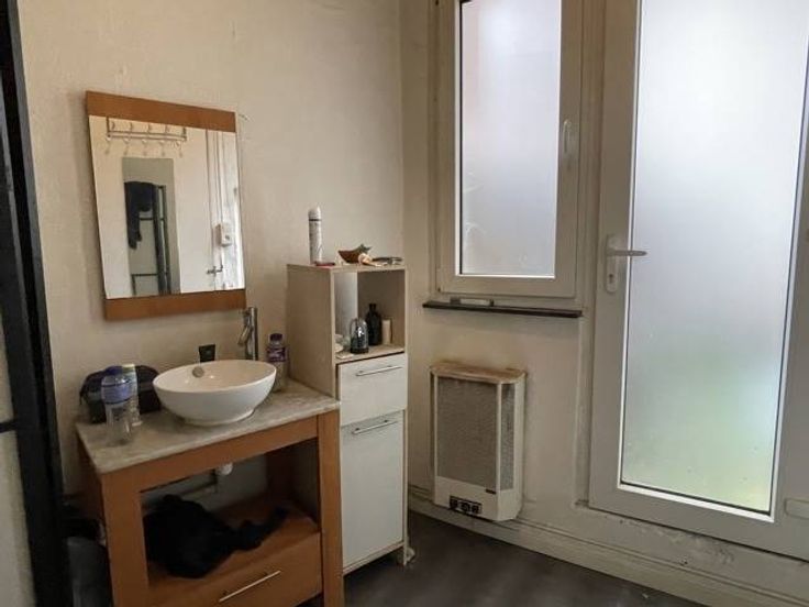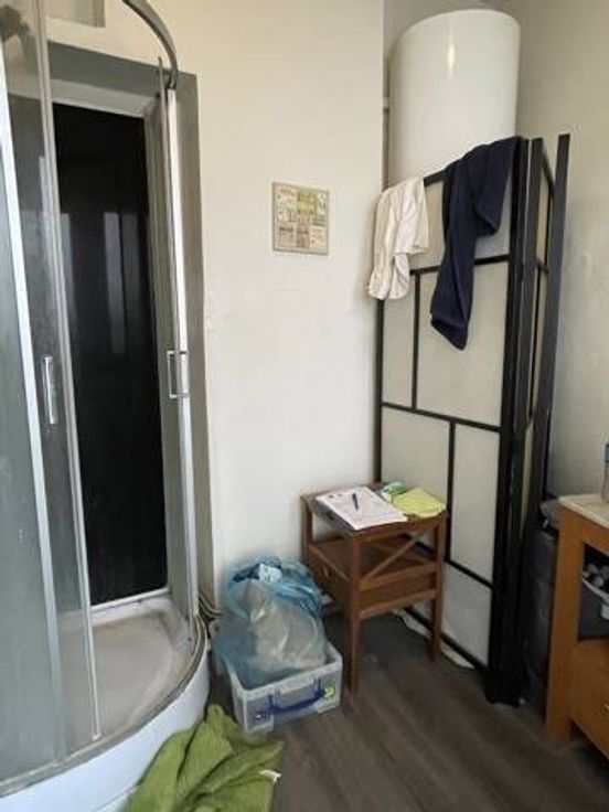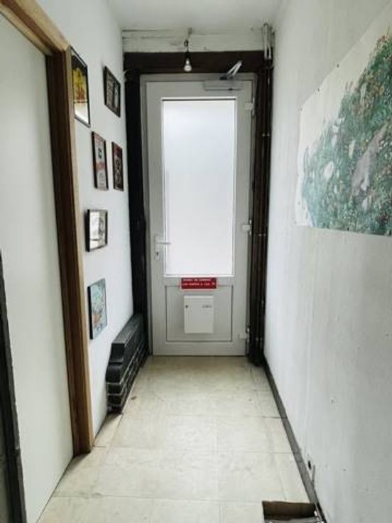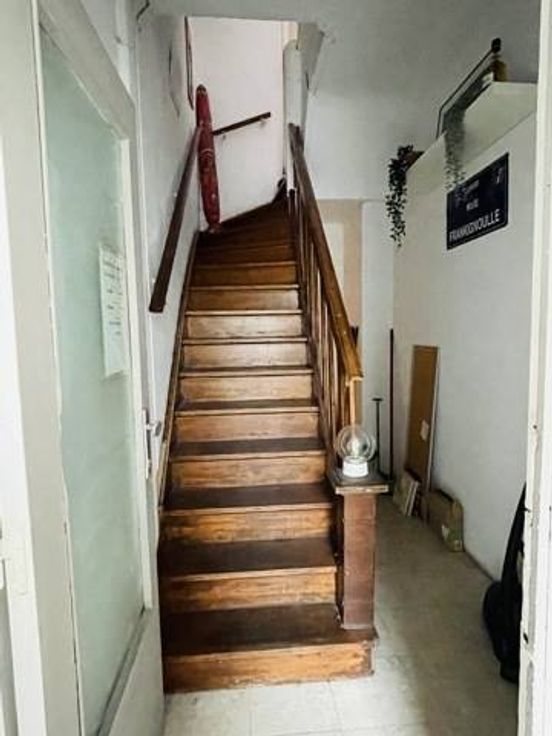 Rez-de-chaussée: surface commerciale (7x3.8) actuellement aménagée en studio avec cuisine intégrée et espace douche (2.75x2.35), wc séparé;