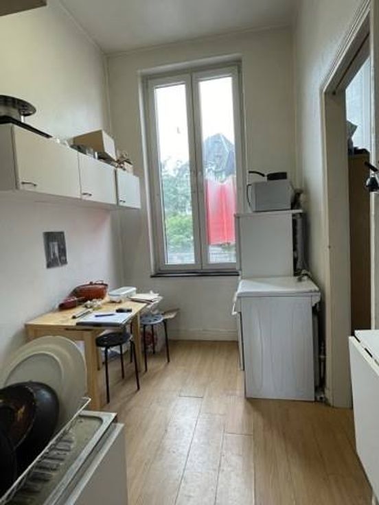 3e et 4e étage: un duplex comportant, au troisième, un salon avec cuisine intégrée (5.65x3.15) et salle de douches (3.35x2.15), ainsi que deux chambres (5.65x3.15)(3.7x2.2) au quatrième.