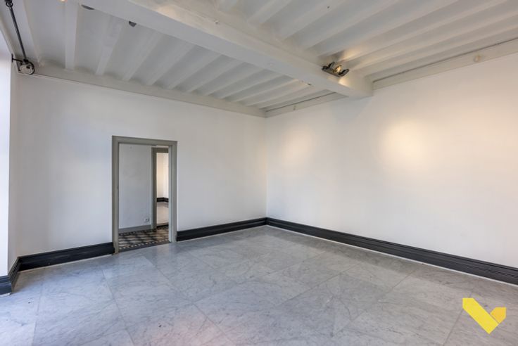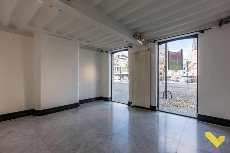 Voldoende parkeerplaats op de markt zelf, al is er ook een privé-parking achteraan voor de uitbater of bewoner van het pand. Het pand is op de gelijkvloers onderverdeeld in verschillende ruimtes waar kantoren of vergaderzalen kunnen in ondergebracht worden, maar evenzeer zijn dit vitrines om in te richten. Een kitchenette en een sanitair blok en een bergruimte die om te vormen is tot leefruimte met zicht op de tuin zijn eveneens aanwezig. Ook op de verdiepingen zijn er tal van mogelijkheden zoals bureaus, vergaderzalen, winkelruimte,... Een ideaal pand om wonen en werken te combineren op een unieke, rustige locatie in het centrum van Mol.