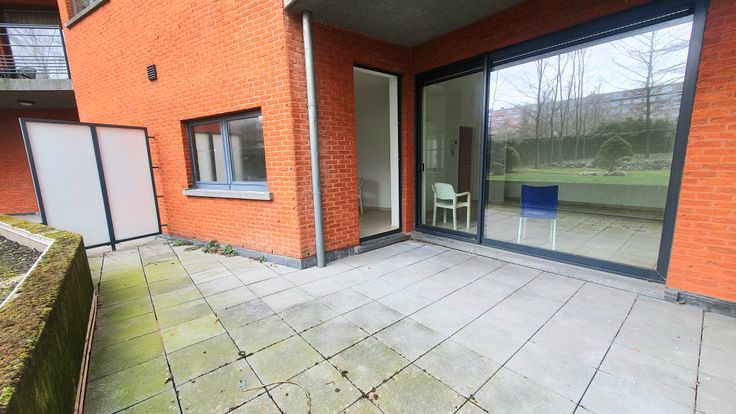 Charmant licht appartement aan de achterzijde van een modern gebouw op de begane grond met groot terras van circa 16 m². Het bestaat uit een inkomhal met apart toilet, gerenoveerde doucheruimte. Woonkamer van 20 m², keuken van 10 m². Individuele nieuwe ketel. Goede dubbele beglazing. PEB D-. Mogelijkheid om met supplement een garage of parkeerplaats te hebben. Algemene lasten 150€/m