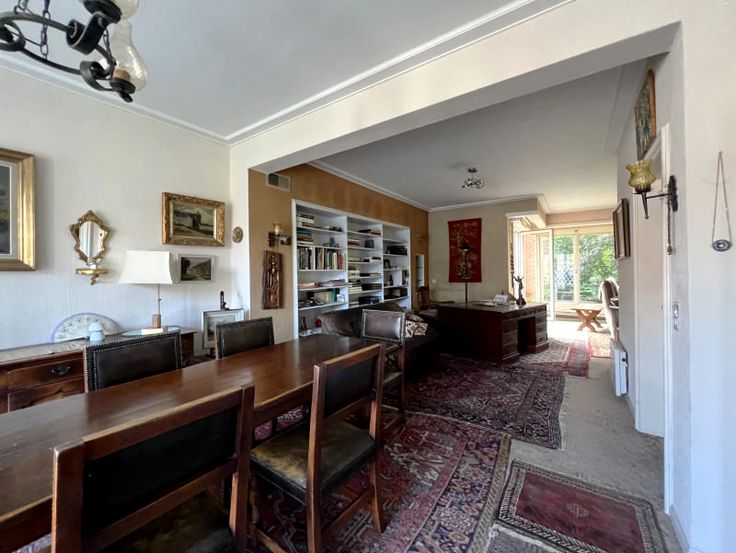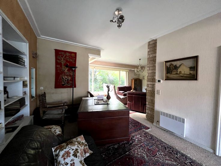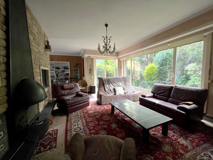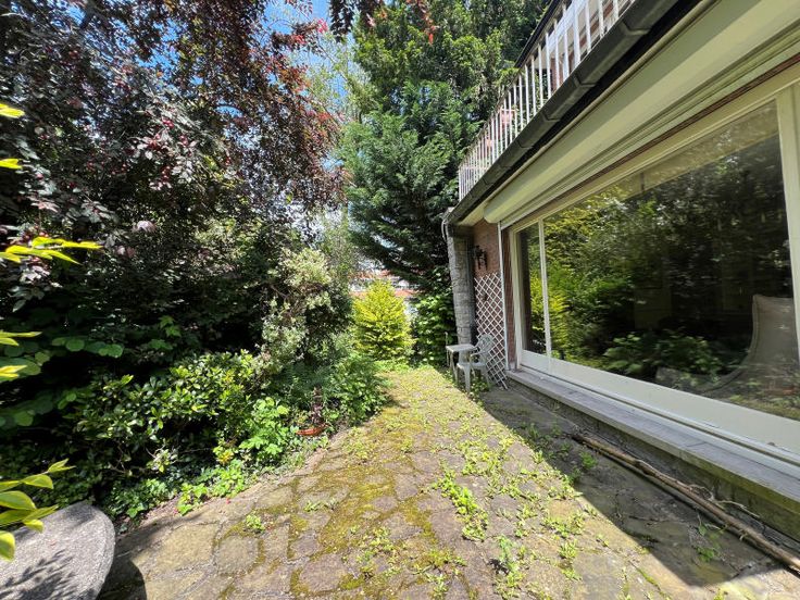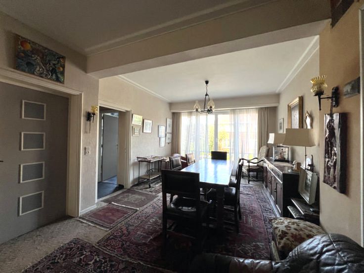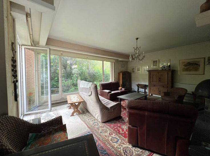Mooie 3-gevel woning - te renoveren! - goed gelegen, zeer rustig, niet ver van het station van Watermaal. De woning beschikt over een inkomhal, toilet, ruime woonkamer (eetkamer/kantoorhoek/salon met open haard), aangename keuken. Toegang tot terras en mooie tuin. Boven 4 slaapkamers, 2 badkamers, een terras. Beneden nog een kantoorruimte, ruime garage, stookruimte en grote kelder. Huis van zeer goede bouwkwaliteit met uitstekende renovatiemogelijkheden!