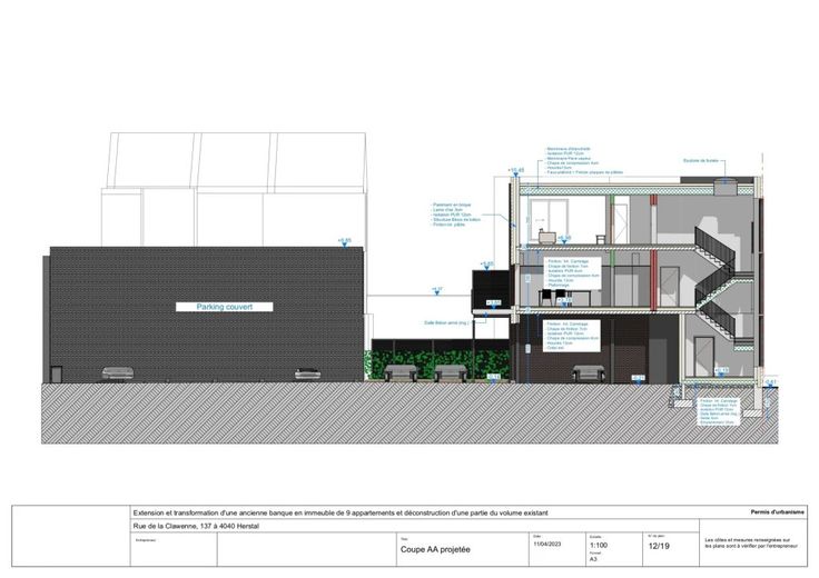 Les penthouses 3 chambres se compose comme suit : (Superficie pondérée d'après plan +/- 119,60 m²) hors espace extérieur. Hall d ’entrée, toilette indépendante, lumineux séjour, espace cuisine ouverte avec accès à la terrasse arrière, 3 chambres, 2 espaces salles de douches, buanderie, 2 terrasses avant, parking couvert, cave. Compteurs individuels. PEB Réf : RWPEB-115920. Cet immeuble est raccordable au gaz pour une installation de chauffage central, châssis double vitrage. Immeuble est vendu en 1 lot gros œuvre fermé sans cuisines, sans salles de bains, sans chapes ni carrelages, sans menuiseries intérieurs, sans électricité ni chauffage. Finitions intérieurs et raccordements à charges de l’acquéreur. Opportunité à ne pas manquer, bonne rentabilité projetée ! Possibilité d'envoi du dossier par mail.