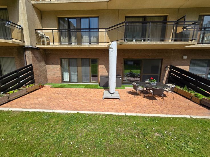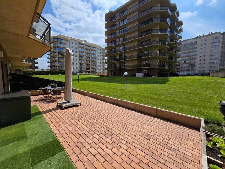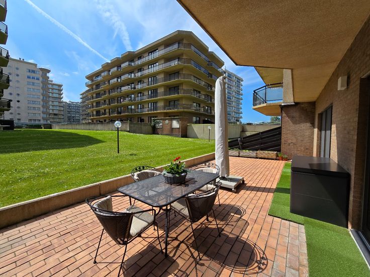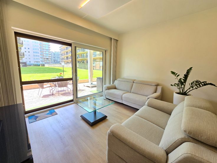 Prachtig gerenoveerd gelijkvloers appartement in de Residentie Westhinder te De Panne. U geniet een centrale ligging op het Esplanadeplein op enkele meters van het strand. Het appartement werd in 2023 volledig gerenoveerd met kwalitatieve materialen en biedt u: inkomhal met WC, woonkamer met open en volledig uitgeruste maatkeuken, toegang tot het grote zuid-west georiënteerde terras, nachthall met 2 slpk's, berging met voorziening voor wasmachine en droogkast, vestiaire en badkamer met lavabo en inloopdouche. Mogelijkheid tot aankoop van een grote garagebox in de ondergrondse. Overname meubelen bespreekbaar.