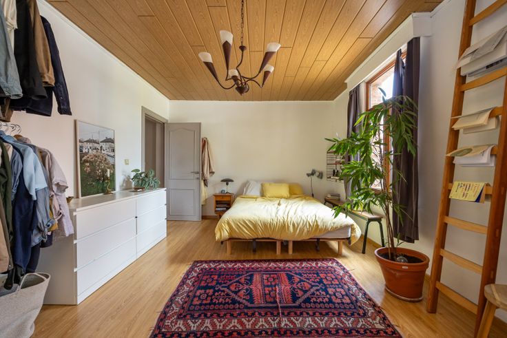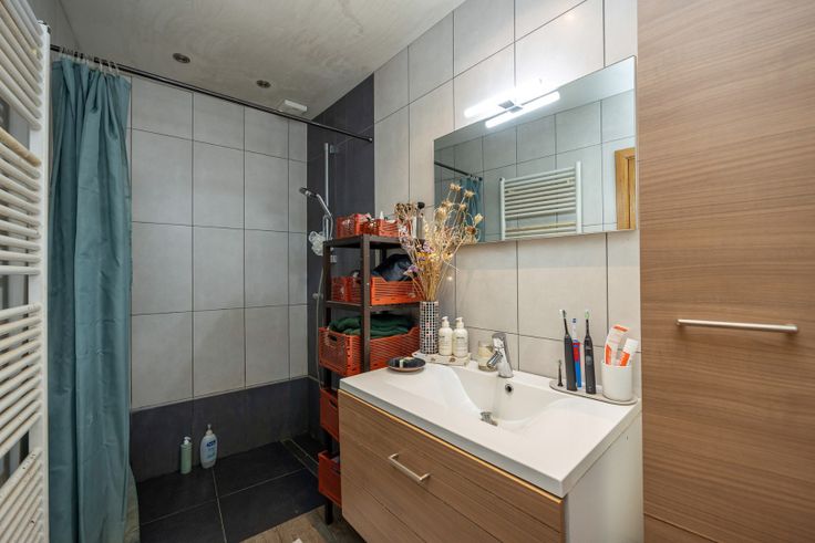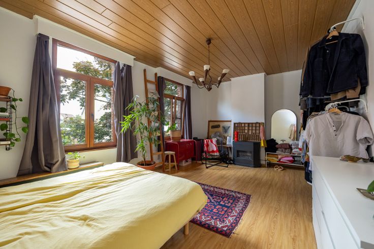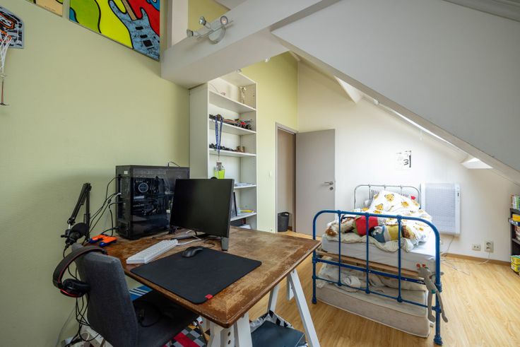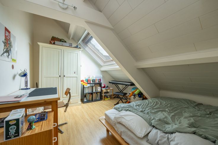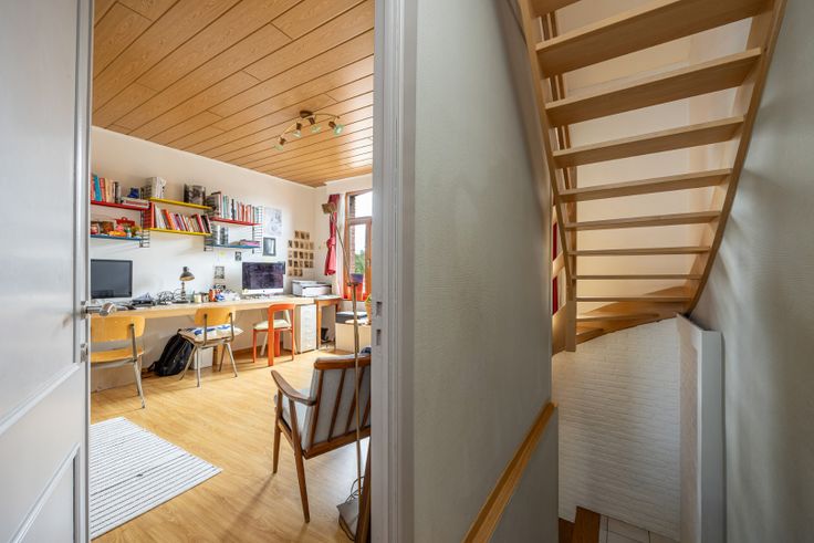 Bestaande uit : inkomhal met gastentoilet,woonkamer, keuken, badkamer, vier slaapkamers, berging, aangename tuin. Aparte zij-ingang voor plaatsen van fietsen.