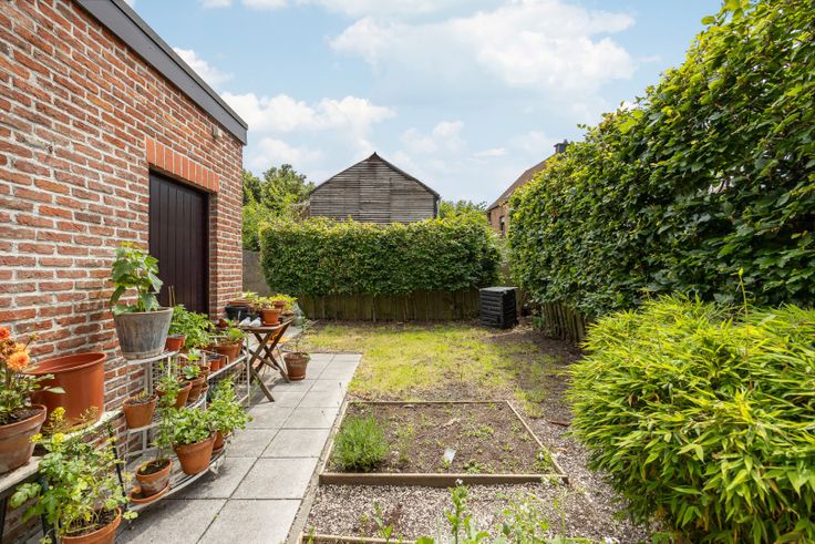 Zeer aangename rijwoning in het centrum van Bonheiden met drie slaapkamers en een tuin.